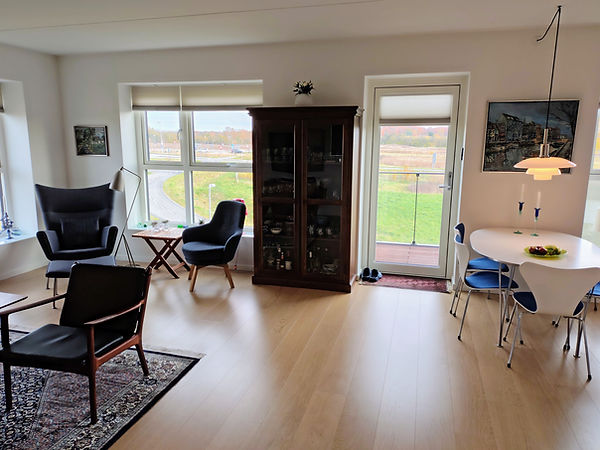 Så er man kommet ind i stueområdet, hvor døren til den østvendte altan er.